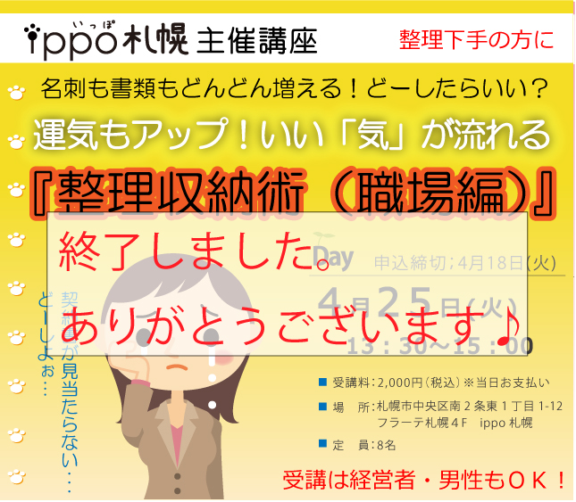 4月25日(火)いい「気」が流れる整理収納術(職場編)